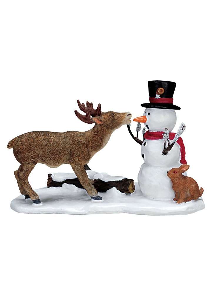 Lemax Snack Time 72405 è una figurina che ricrea una scena molto divertente. Un cervo si avvicina piano piano ad un pupazzo di neve con il classico naso a carota e annusa l’ortaggio.